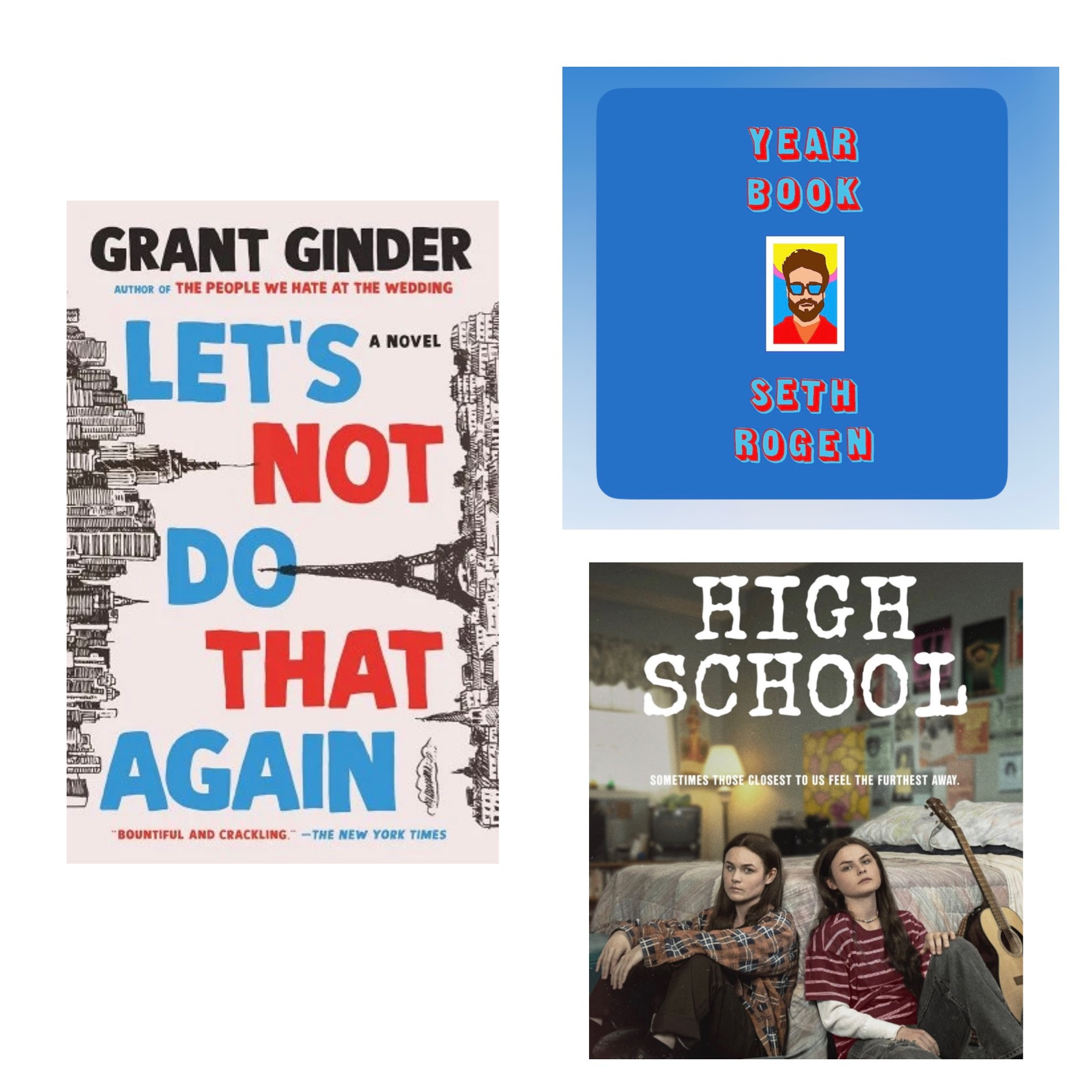 3. On the way to the beach, we listened to Seth Rogan’s Yearbook on audio. Y’all: it was SO good, and we laughed so hard during the last chapter we almost had to pull over. I know I mentioned it before but seriously: if you are a fan, you must listen. Another great discovery was the show High School. It’s about the singers Tegan and Sara and their own adolescent experience and it is SO incredible and unique. Find out more on their site. And finally, I raced through Grant Ginder’s Let’s Not Do That Again, which was intricate and hilarious and kept surprising me. So good!